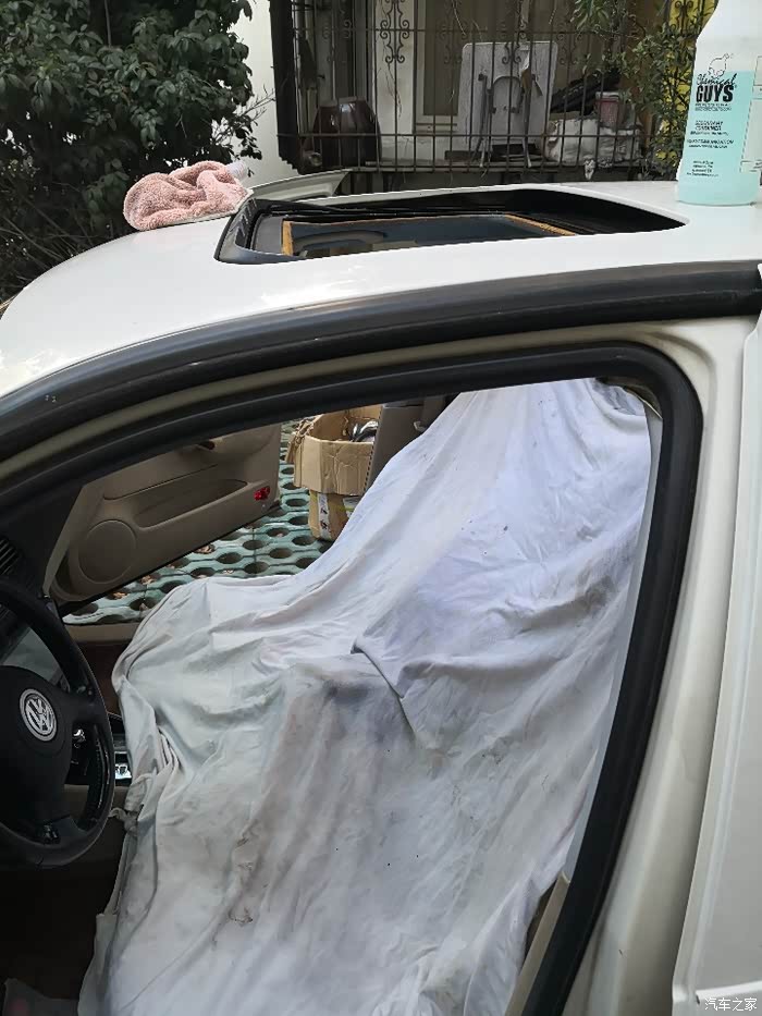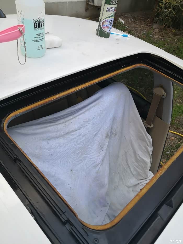 天窗已经拆下来了,拿个破布遮哈子