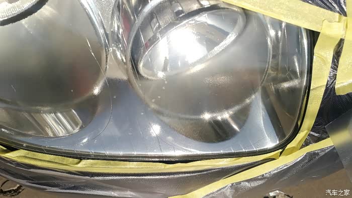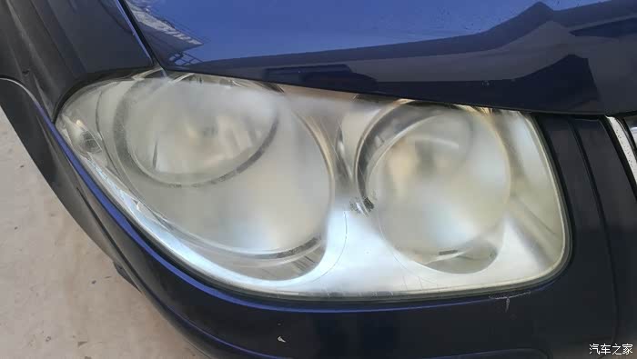 处理前的两个大灯,夜路就是个睁眼瞎,外皮老化。