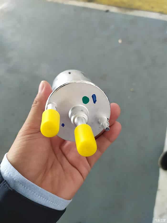 这就是即将装上车的新的燃油滤清器,接头处有堵头保护,防止进入灰尘和杂物。