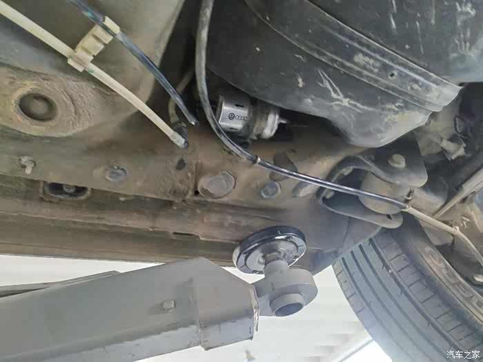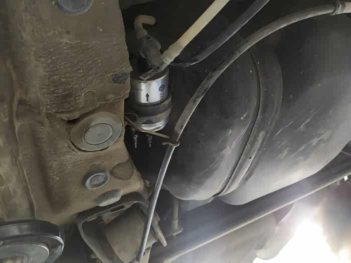 干活很麻利的师傅,很快就装好了。在满是泥土的底盘上,新的燃油滤清器很鲜亮。