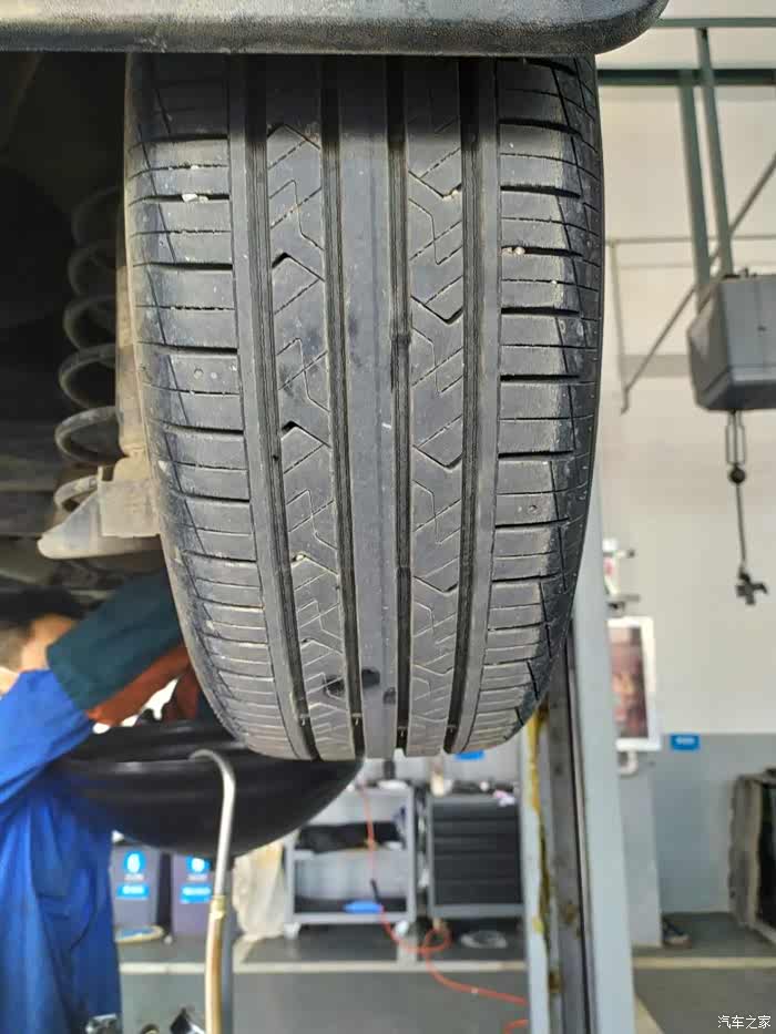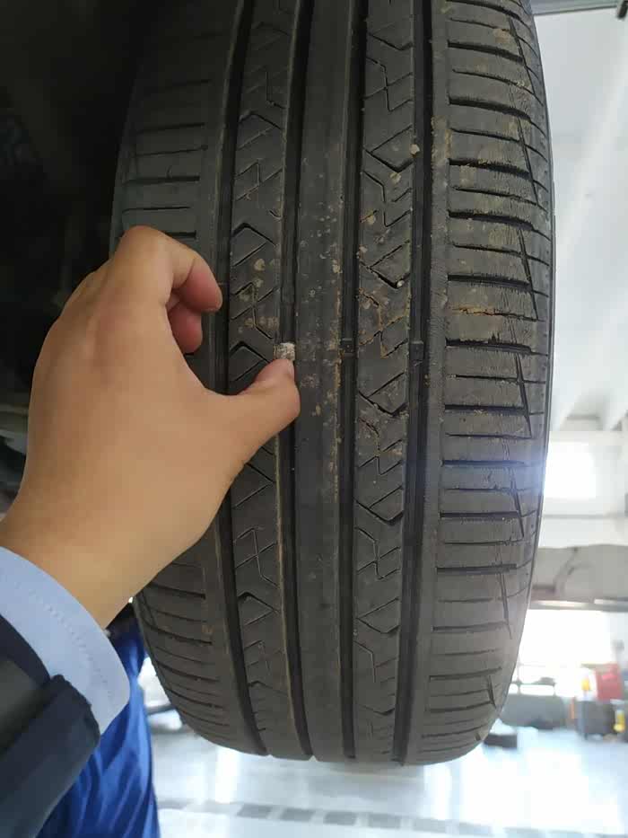 师傅继续拆,自己检查一下轮胎,清理一下轮胎沟槽里的石子。