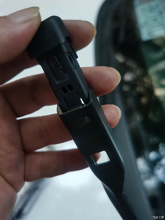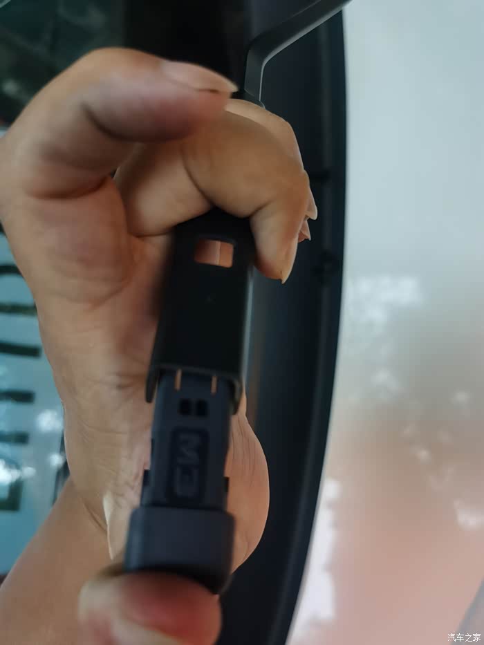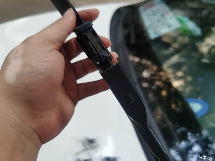 还有一种更换方式,可以先把卡扣先对准雨刮插槽卡紧,然后再把雨刮器卡进雨刷卡扣里,二种方式都很简单。