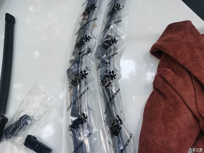 2个雨刮器安装完成后,我们就可以把雨刮器胶条保护套拆除了。