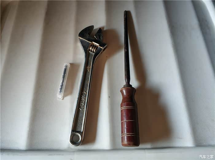 买的丝锥到了,马上开干。除了丝锥之外,还需要一把一字螺丝刀和一把活扳手。