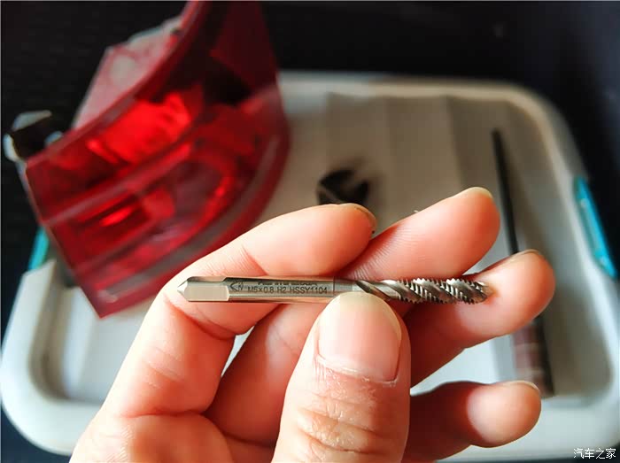 螺丝孔比较深,丝锥长度有限,需要把整个尾灯先拆下来