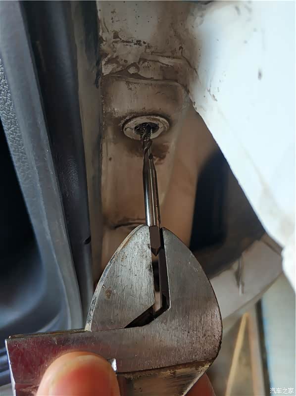 事情是这样的,前些日子自己把尾灯更换成了高配的LED尾灯,拆卸右侧弯灯的时候发现上面的螺丝是没有安装到位的,而且差的比较多。螺丝是专用的特殊花纹螺丝,下面的螺丝用普通一字螺丝刀没费太大的力气就拆下来,上面的却死活拆不掉,没办法只能去附近的汽修店找到专用的扳手拆了下来。