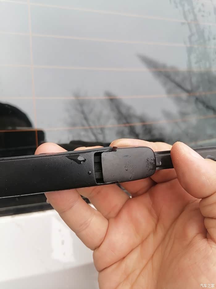 我的后雨刮器不仅刮不干净,而且还有很大的“咯吱咯吱”摩擦玻璃声音!雨刮器更换并没有一个标准的时间,一般建议每年更换一次即可,但如果雨刮器的效果还好,并且也没有老化的现象,那么延长时间也可以。最主要的还是看雨刮器本身的状态,如果不足一年,但是在刮水的过程中,有明显刮水不干净的情况存在,那么就需要进行更换了。我的后雨刮器已经使用了两年多了,雨刮片老化变硬了。