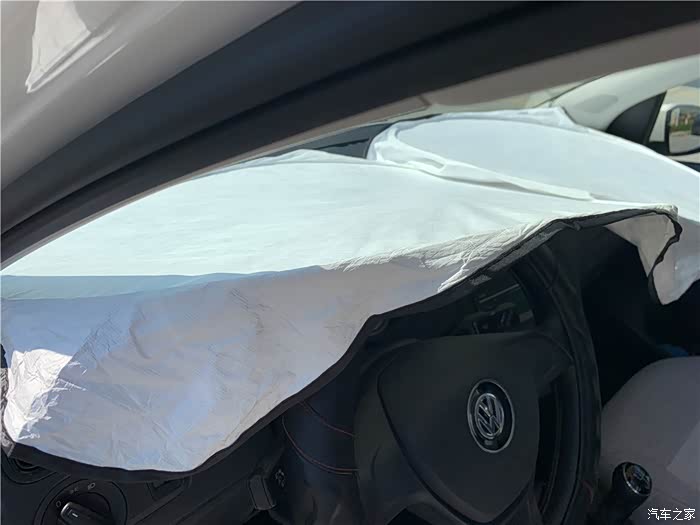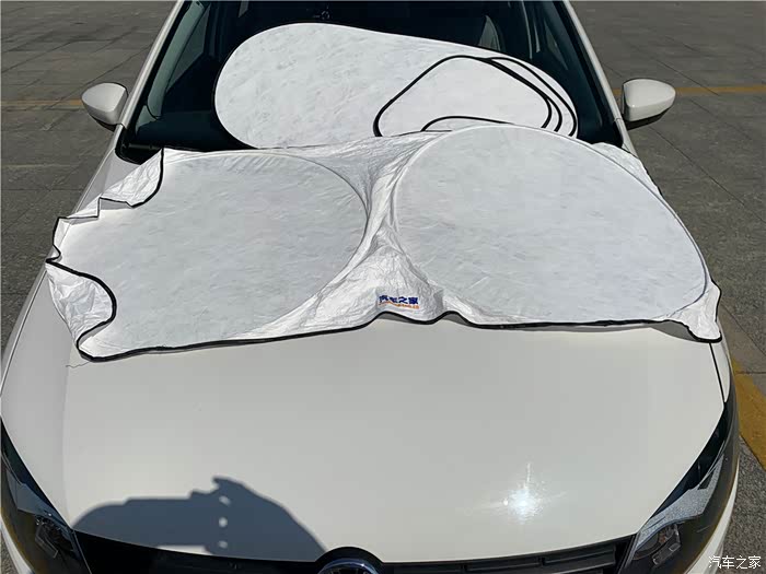由于Polo车比较小,前挡风玻璃不大,前挡风玻璃遮阳挡完全可以固定在前挡风玻璃槽内。