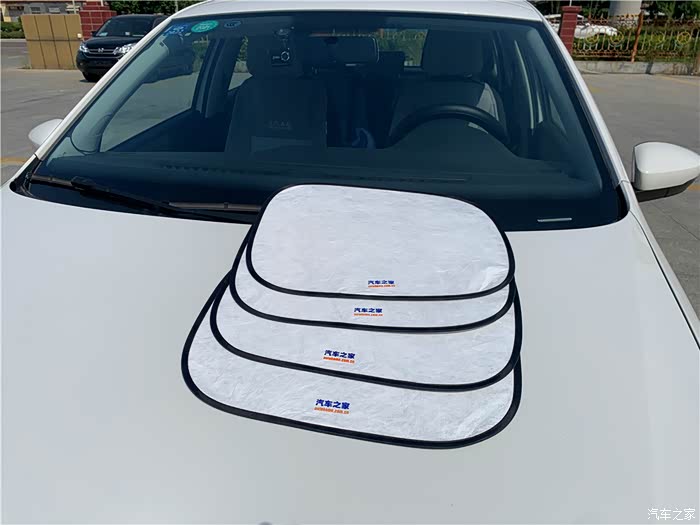 展示一下防晒隔热遮阳套装,包含车前挡风玻璃、后档遮阳挡和4个侧窗户遮阳挡。