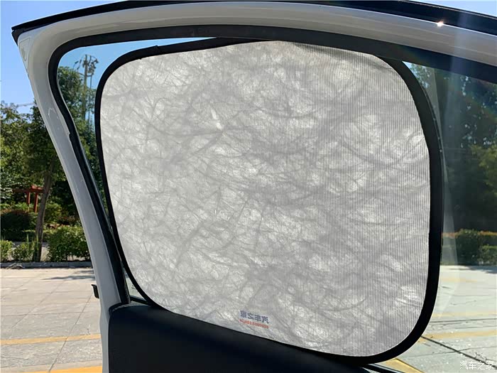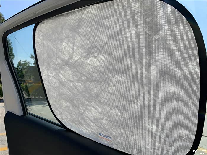 这是后车窗遮阳挡展示,稍微有些小,一般后车窗遮阳挡我是一直使用不拿掉的,主要是行车也不影响视线,后隔板也得到了防晒作用。