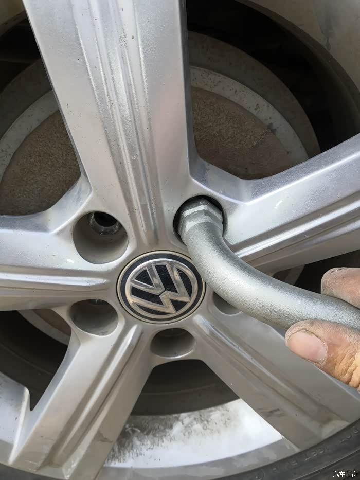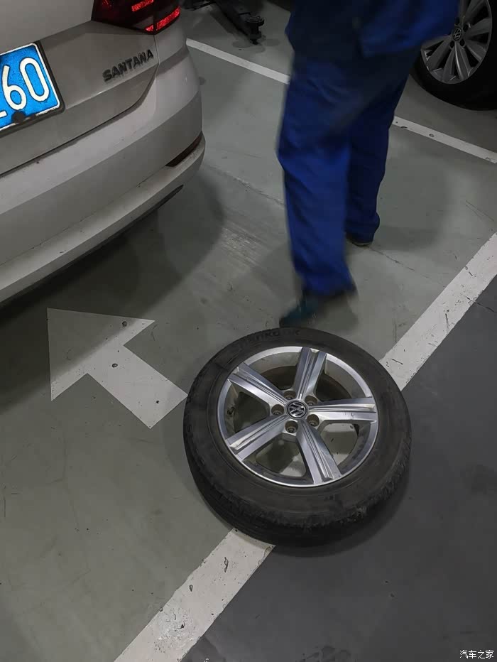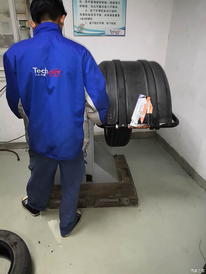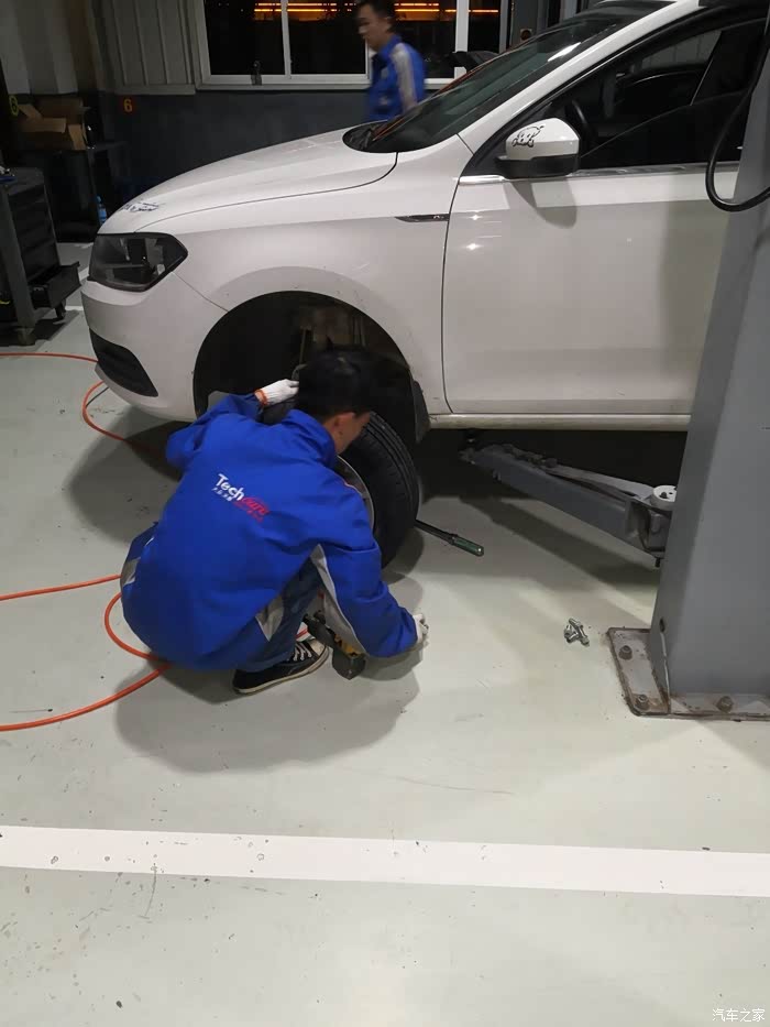 最后新轮胎要装车了,新的要放在前面,所以师傅把前面的旧轮胎拆下来。