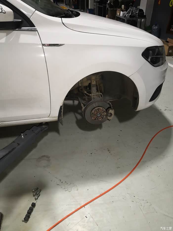 同样左侧前轮也是拆下来放在后面。新的放在前面。