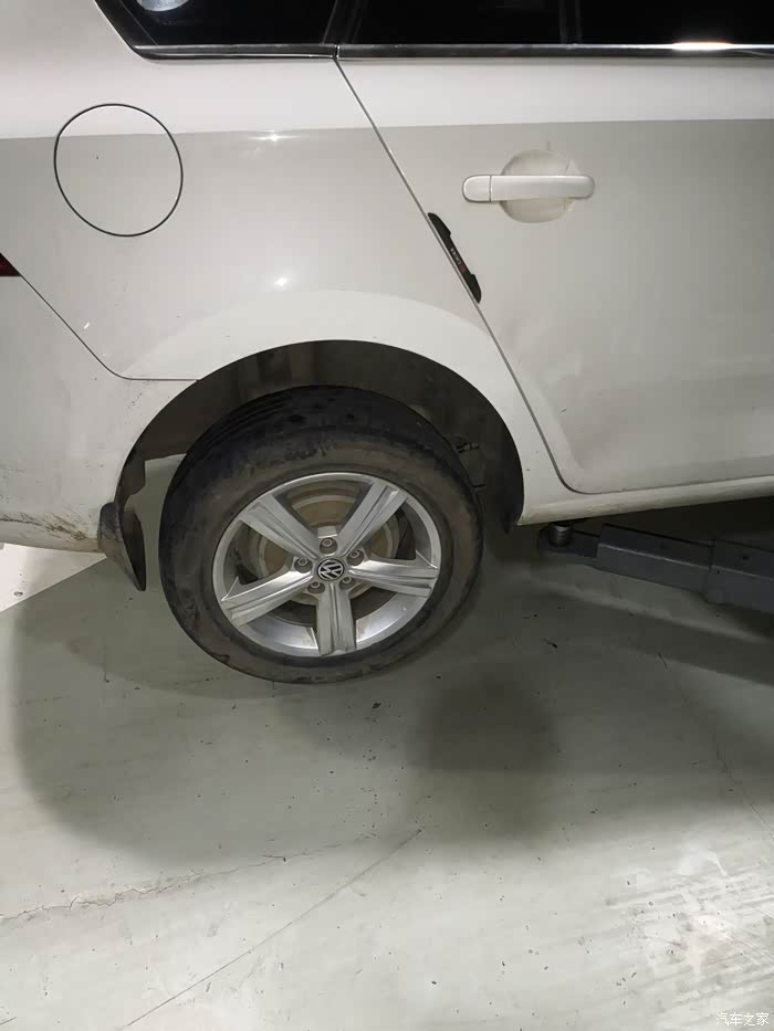 然后升起车子,检查一下别的轮胎磨损状况,看有没有必要一起更换掉。
