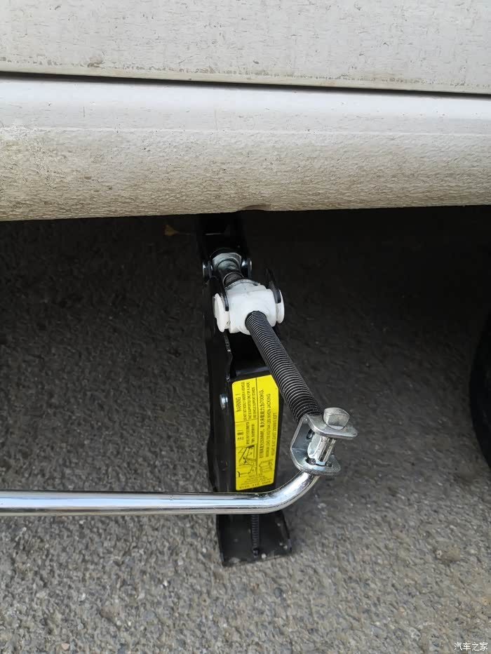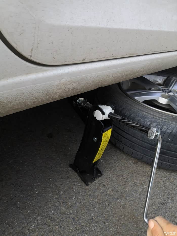 松开螺丝以后再升起千斤顶卸下螺丝。车底有标记支撑千斤顶的位置,就是凹口位置,别顶错了,顶坏了车底得不偿失。