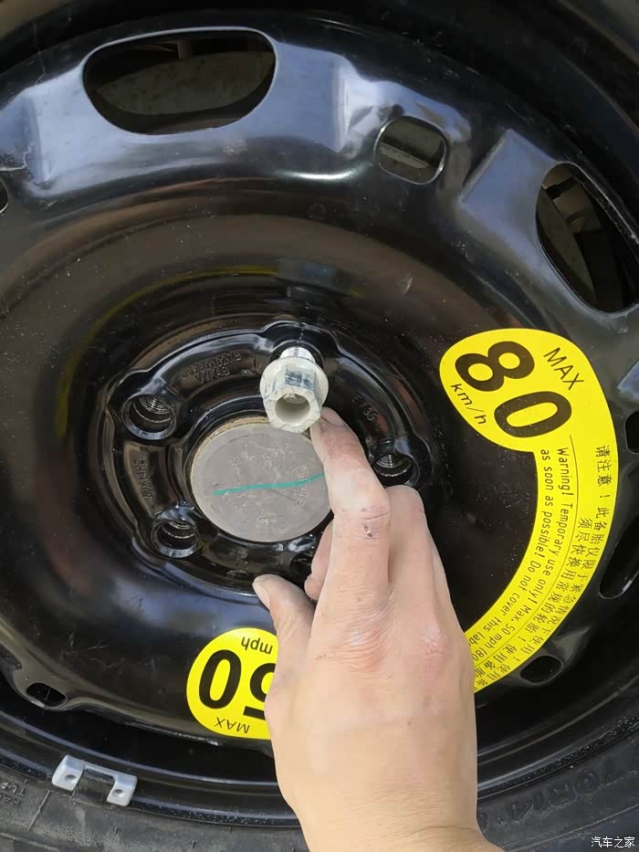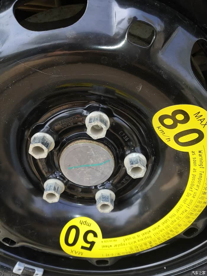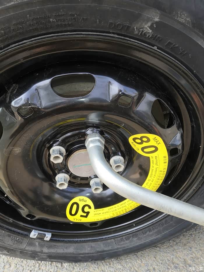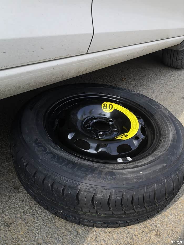 当务之急就是先换下废胎,换上备胎去4S店更换新的轮胎,毕竟备胎小一个型号,没法做正胎用。从后备箱取出备胎放在车底下,防止升顶取下正胎的时候发生意外。