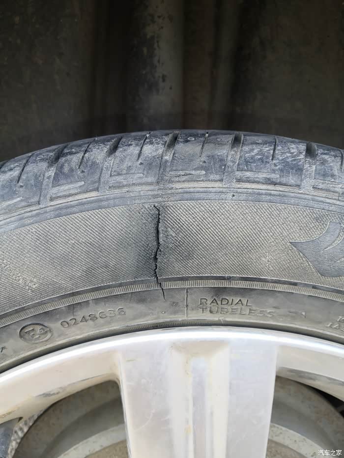 这次换胎全都怪我自己的疏忽,过于自信转弯的时候右侧后轮扎到路沿石一角,直接爆胎了,胎壁上裂了一个大口子,轮胎一下就没气了。心疼加自责也是改变不了现实。