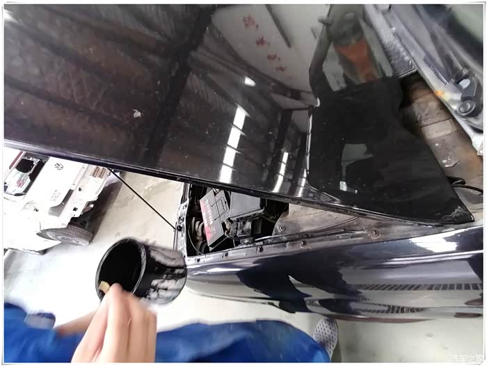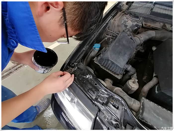 很快,我开着黑桑到了店里。喷漆的师傅知道我来意后,欣然拿出漆桶,给机盖点漆。师傅说,机盖是盖着的状态喷的,边沿容易忽略。我干脆把,发动机舱的边沿金属部件,也点漆处理了一下。