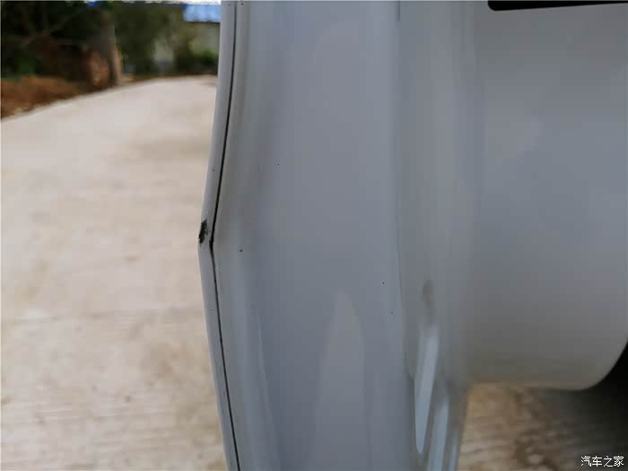 主驾驶车门侧面,发现一处,可见钢板的伤口。究其原因,或是开车门时所致吧。