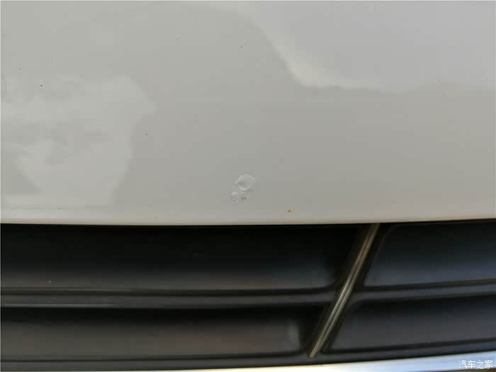 引擎盖的边缘处,有一处小伤疤,或许是路上飞沙走石所致吧,底漆可见,有点深。
