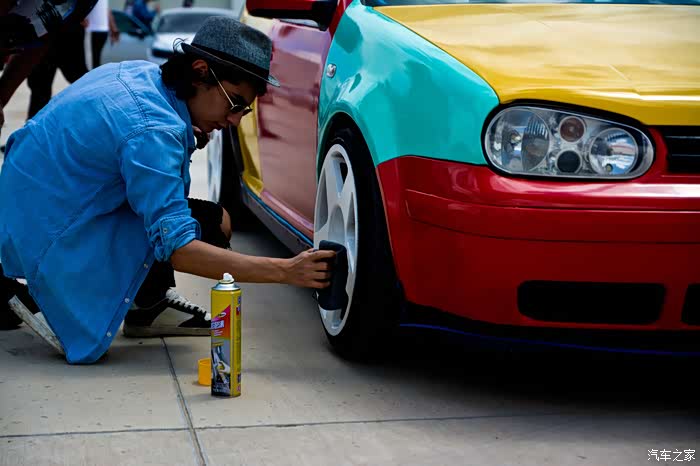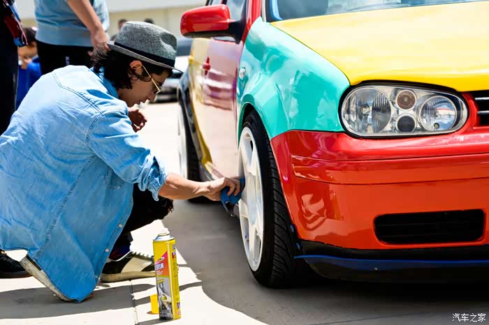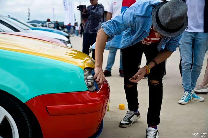 这台车的颜色由三种颜色组成,漆面特别的光鲜