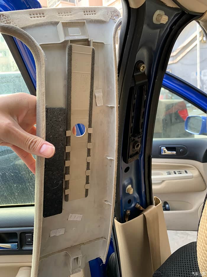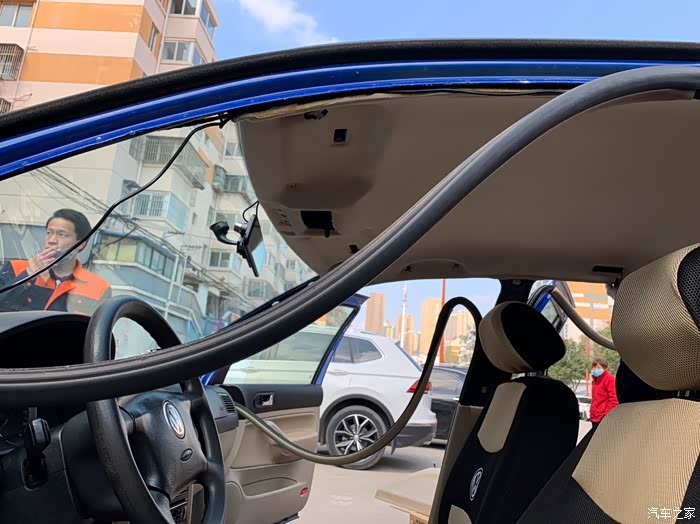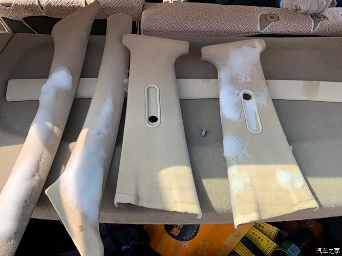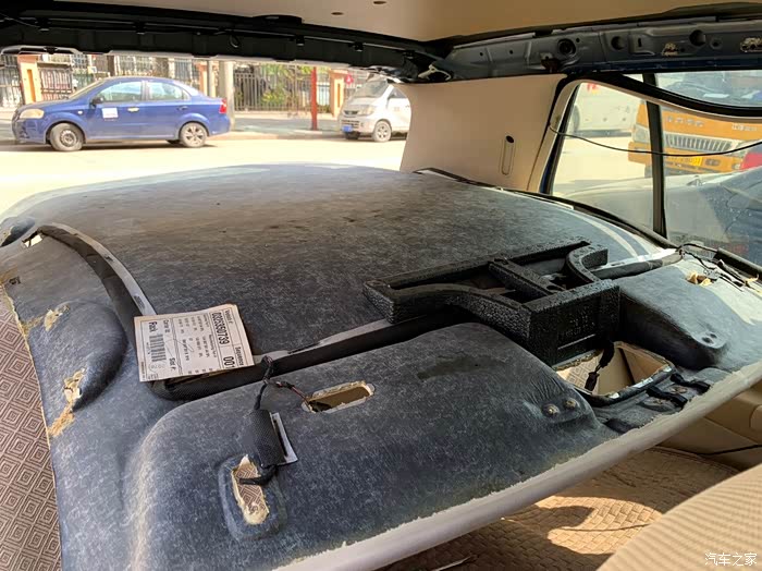接下来就是修复顶棚异响,由于高4通病,顶棚脱落,所以原车主之前在4s店已经更换过原装德产顶棚,但是不知道什么原因有异响,所以需要整体拆下来找到原因。