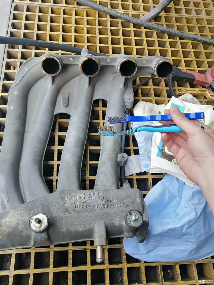 进气歧管虽然不脏,还是里里外外的彻底清洗了一下,毕竟打开一次,弄个彻底。