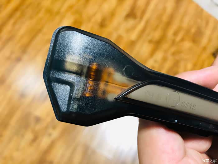 感觉亮黑色耳朵配透明转向灯又差点意思,而且嘉旅的转向灯是没有流水效果的,为了整体性,为了晚上的效果继续改。变成熏黑色的流水转向灯,继续网上冲浪。流水转向灯真的是太多了,五花八门。一抹蓝、一抹红、一抹白。各种一抹我挑的就差抹脖子了,而且还有各种动画效果的。我去真的是太多种类了。和几个卖家聊了一下都推荐还是单色的,说是一抹的是比较炫酷,但那种 第一里面是双排灯珠,点亮后是双轨道,效果不如单灯珠大,第二出问题的几率比较高,还是建议买单色不带一抹功能,第三一抹功能的需要单独走一根线,需要夹到照地灯上。后期验车可能还要改回来比较麻烦。那就单色黄吧。白色晚上太亮,可能会影响行车安全还是黄色比较合适。那就黄色了。