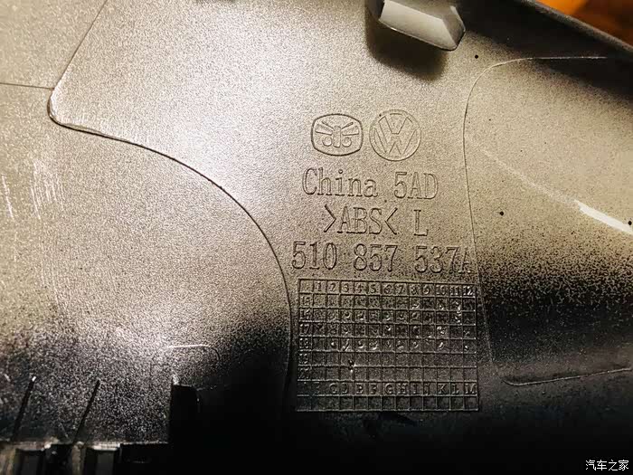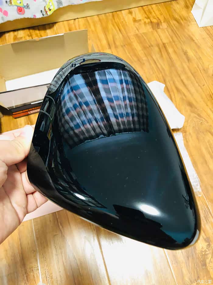 应该这个耳朵就是给嘉旅出的,因为我看卖家图上面有SPORTSVAN字母,但是不知道为什么到的时候就抹掉了,我觉得可能是因为高尔夫、高尔夫嘉旅、途安L和18款凌度后视镜壳是相同的,嘉旅的用户少为了少有疑问所有把英文字给磨掉了,要不人家其他车型买回来还要问。合模线还是可以的。反面一看就是后喷色但是效果还可以,漆面很亮。