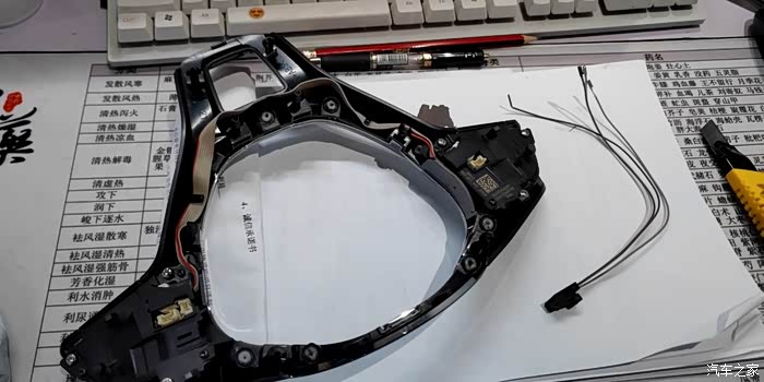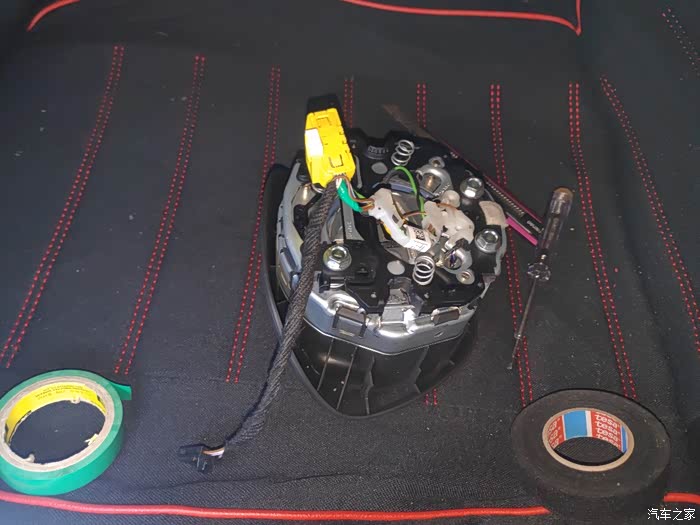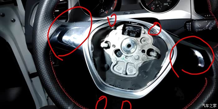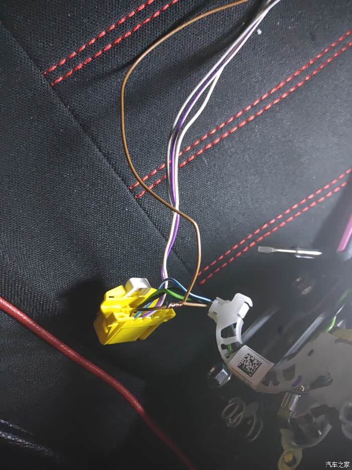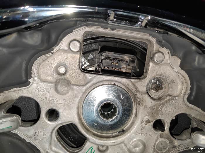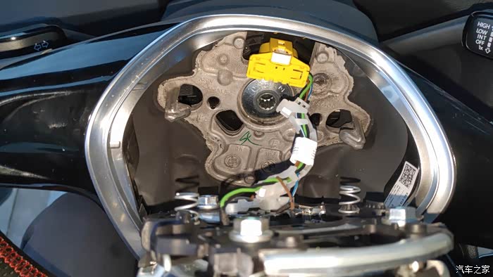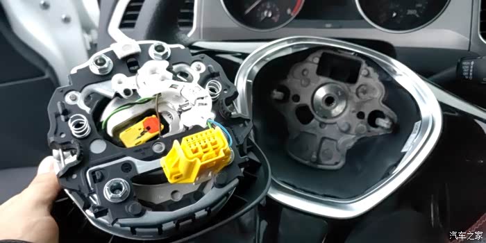 接下来就同理将方向盘向左转动90°,同样和上图拨动,然后气囊总成就会弹出!注意有连接线!!!