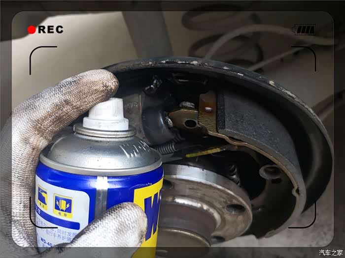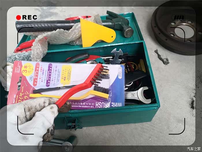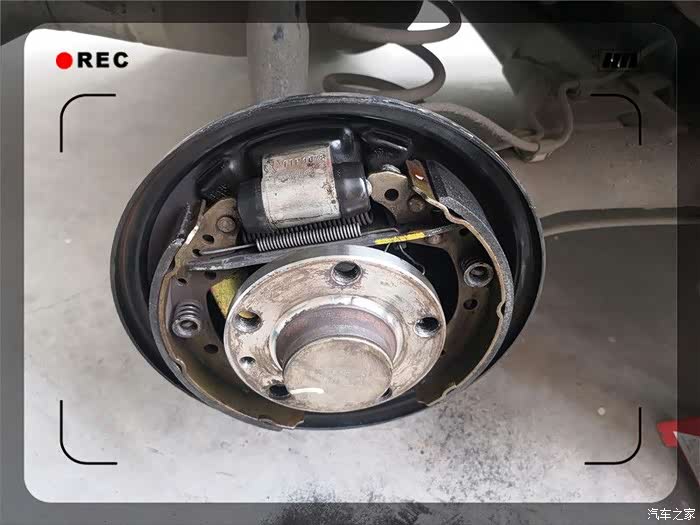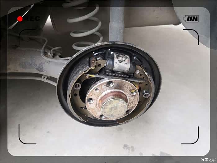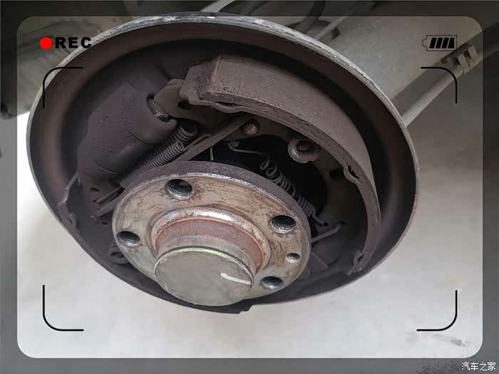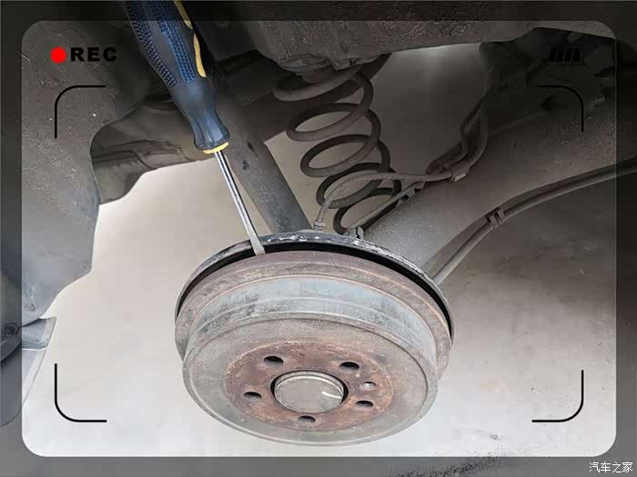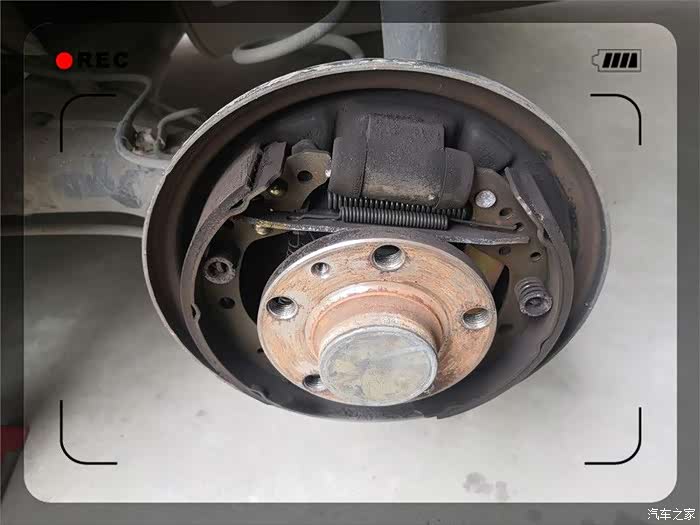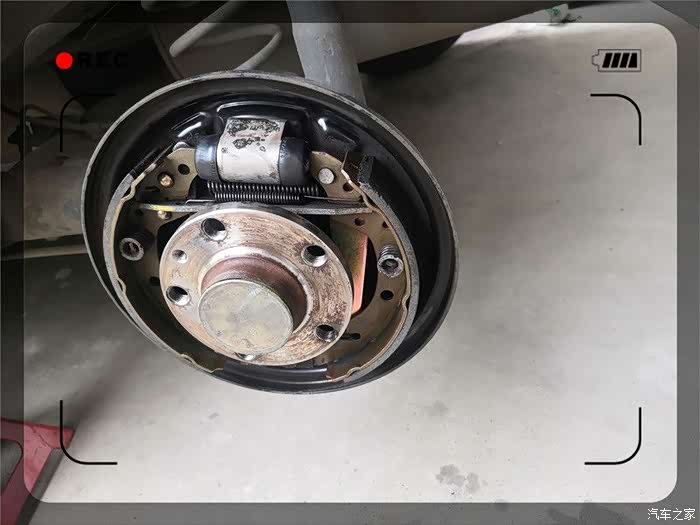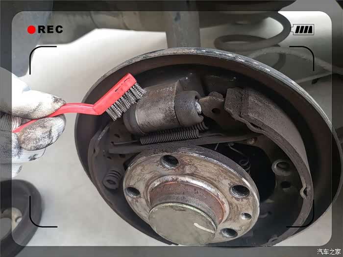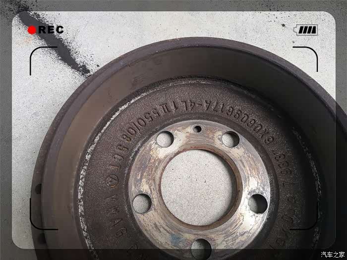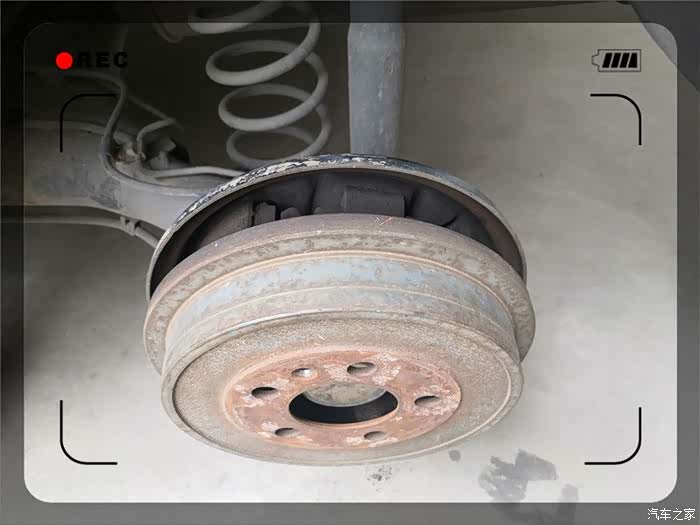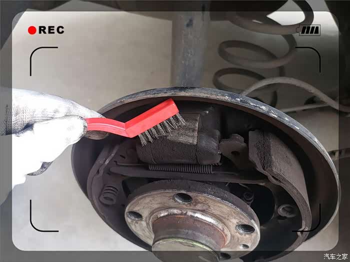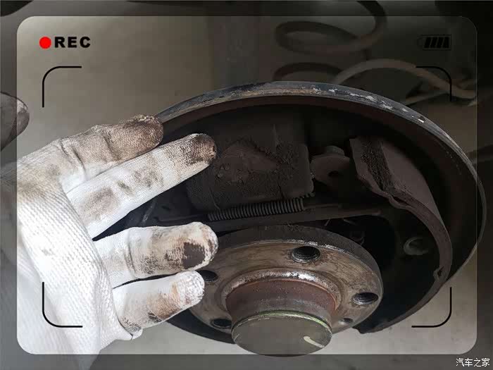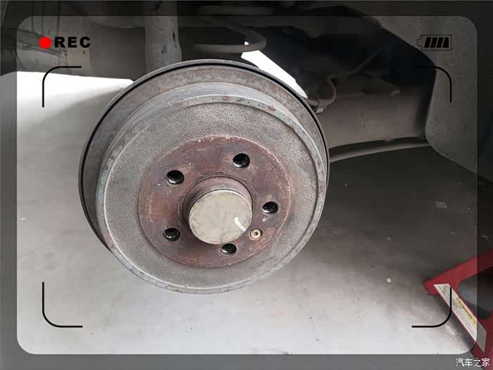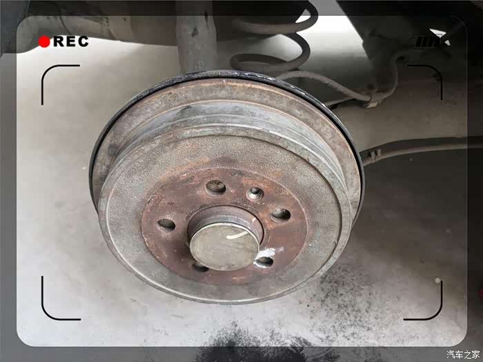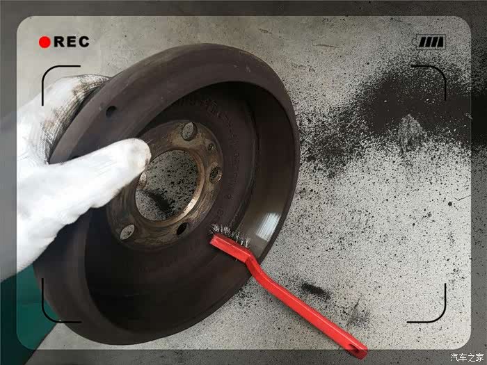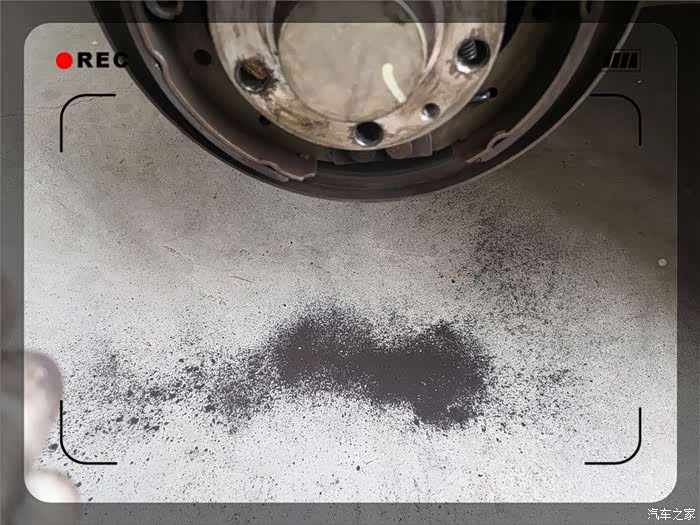 终于取了下来,紧接着是一阵灰尘,实际为刹车片磨损留下的金属粉。