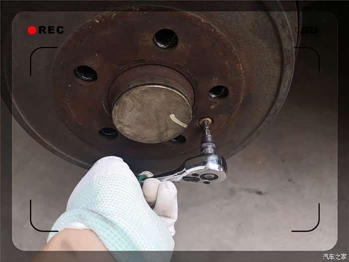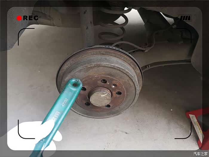 这时候松开手刹,轮毂实际就是可取下状态,但是由于长年累月没有取下,往往会比较难取下。