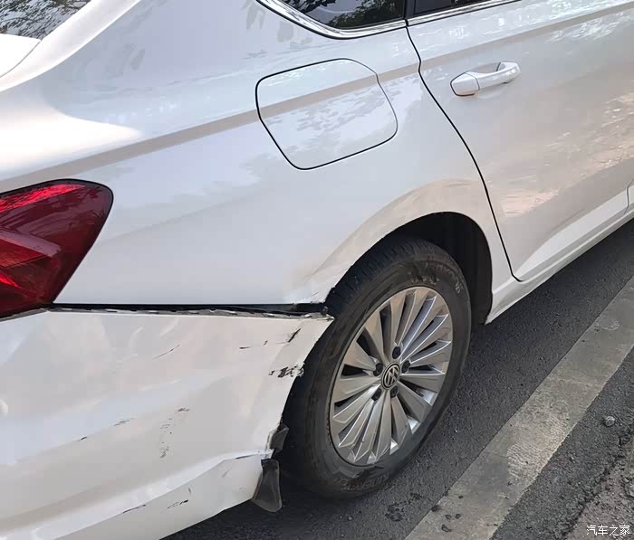 这下被撞的还挺严重的,估计整个后保险杠都要换掉。