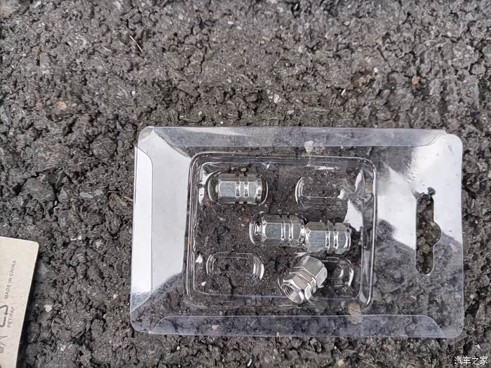 先吧那个小石子拿出来,还好用手就抠出来了。然后吧新的气门芯帽扣上去。