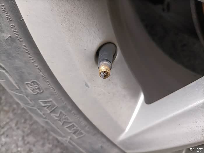 就是这个左后轮胎,气门芯帽不翼而飞。