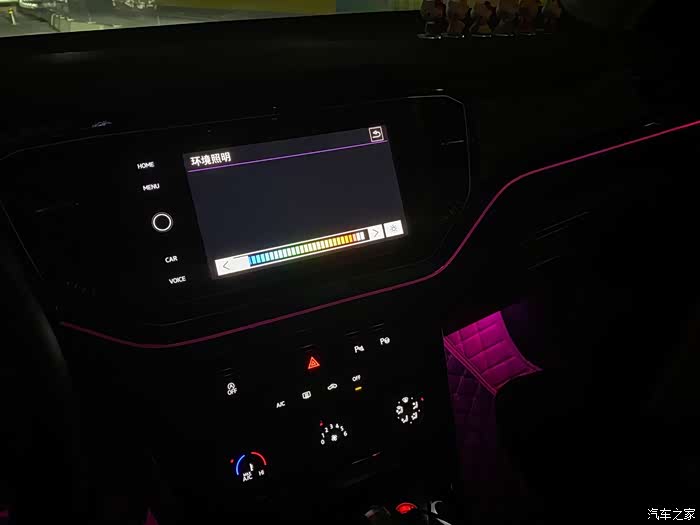 氛围灯安装过程就不介绍了,看效果图吧。紫色,看着有点玫红。