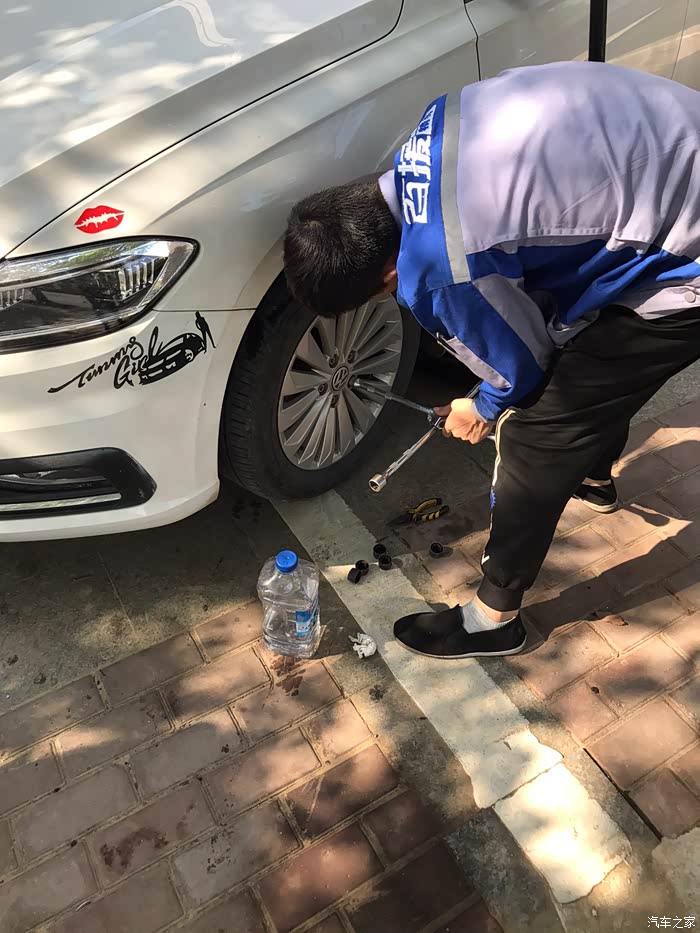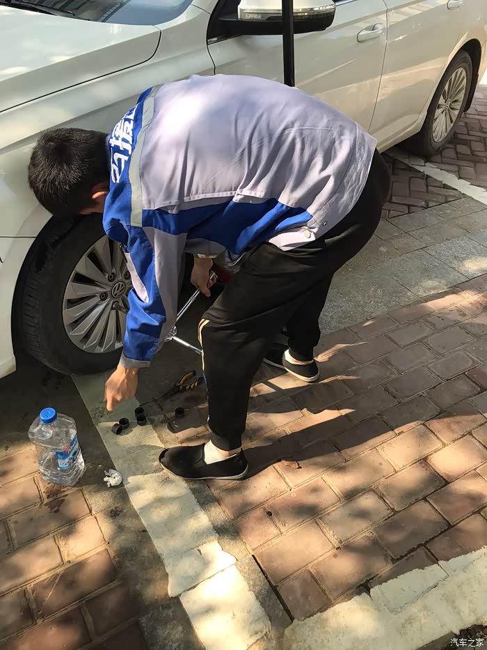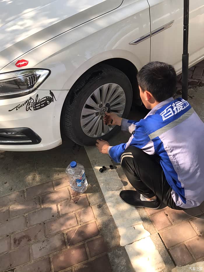 下面就来说说这次扎胎的经历吧,10月7号下班开车回家,就莫名的听到左边的轮胎传来一阵阵的声音,当时没有在意,以为是这几天下雨,轮胎上粘了东西,所以才会发出的声音,就没有机会。第二天开车还是听到了声音,我依然还是没有去理会,心里想着,就算是扎钉子了也不会有这种(嗒嗒的声音)更何况爱车还有胎压监测。