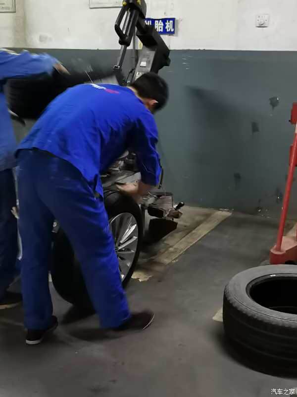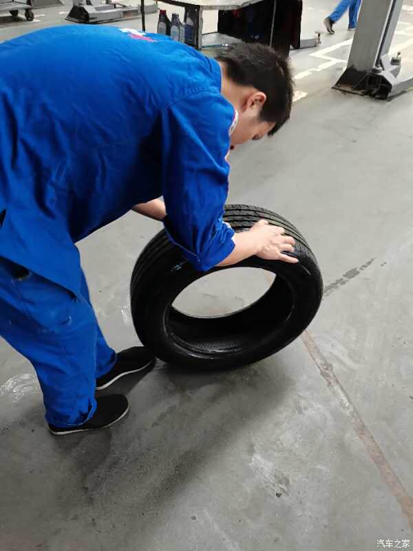 找到位置漏气的位置,然后上扒胎机扒下轮胎。师傅的动作还是很快的!