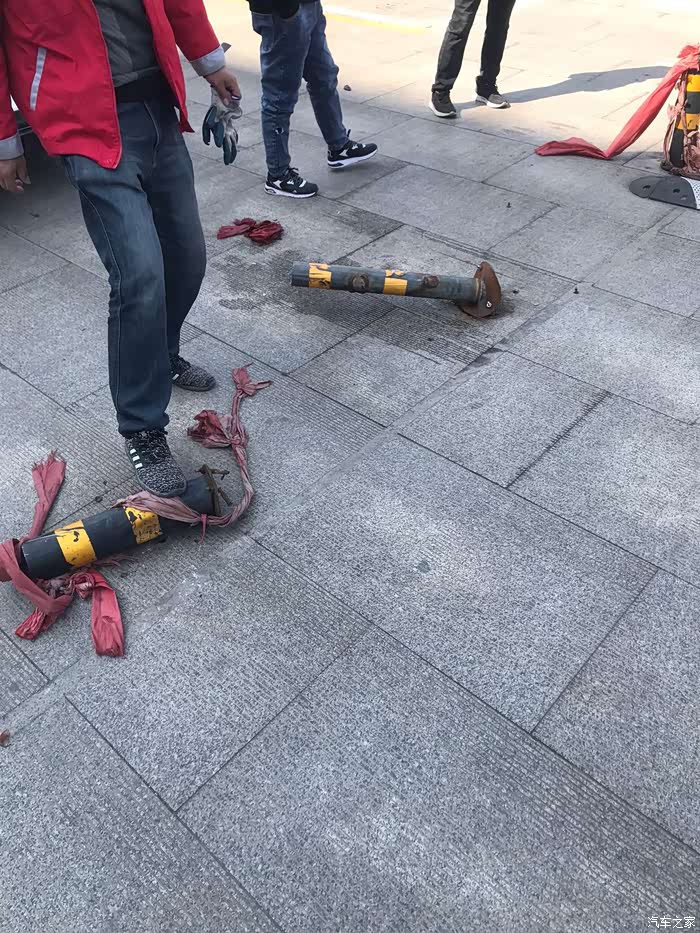 连撞两个桩,保险杠轻微破损两厘米