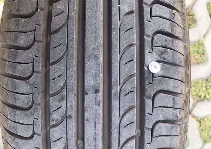 来到左侧就看到左前轮胎瘪了,这样就必须换备胎才能去补胎。