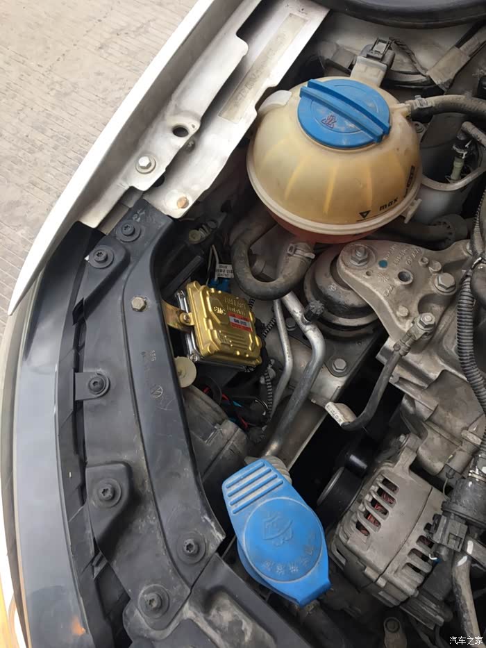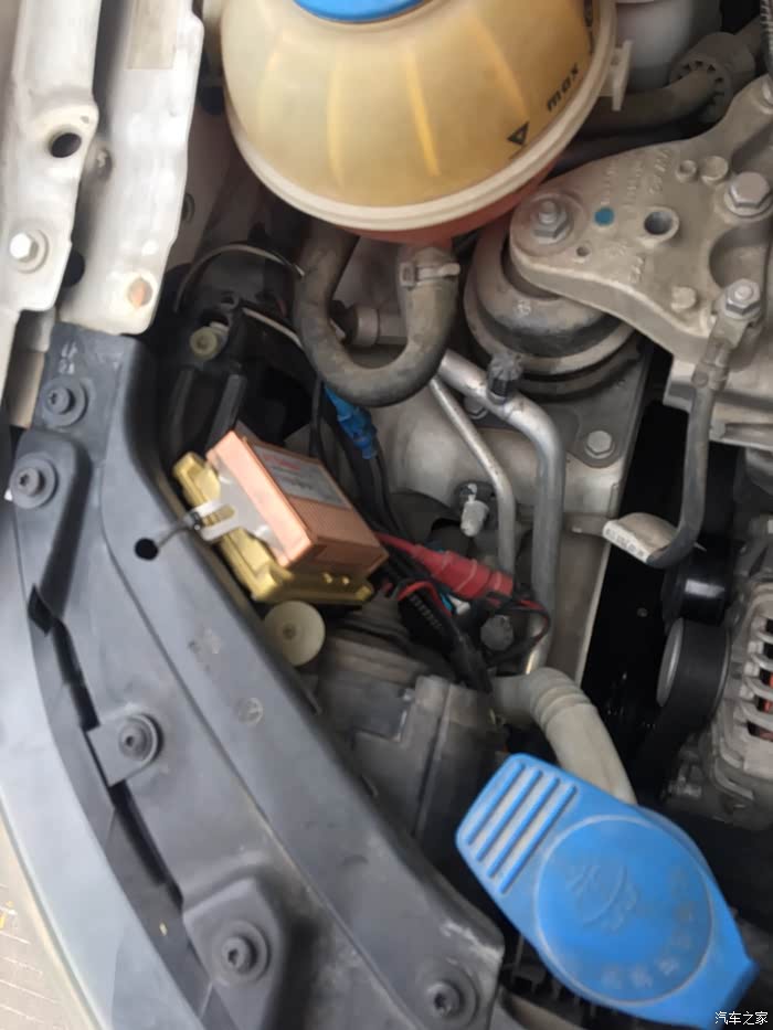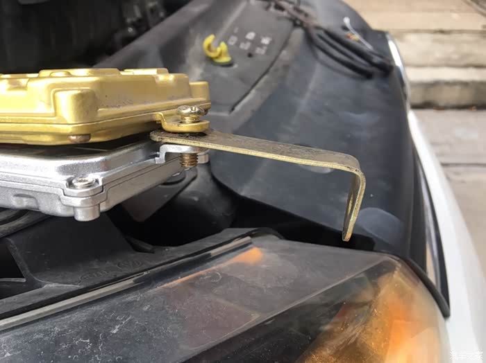 用螺丝固定在大灯支架上,这样以后就减少了震动带来的异响了,以后用塑料卡扣扣的时候总是会有异响,毕竟不是硬连接,产生异响也是正常的。