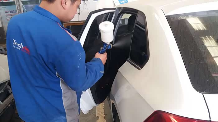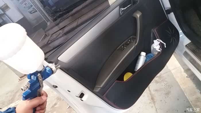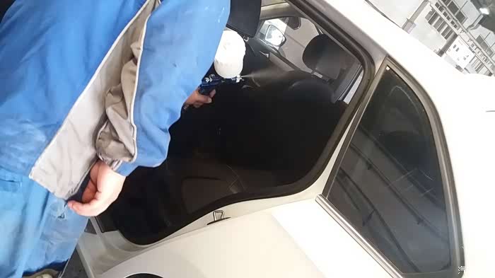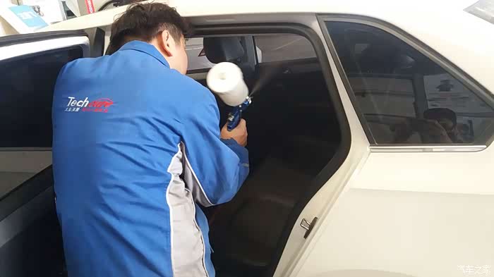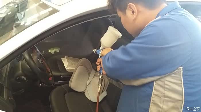 对前挡和前排位置和空间进行杀毒,师傅很细心,喷的很仔细,赞一个。
