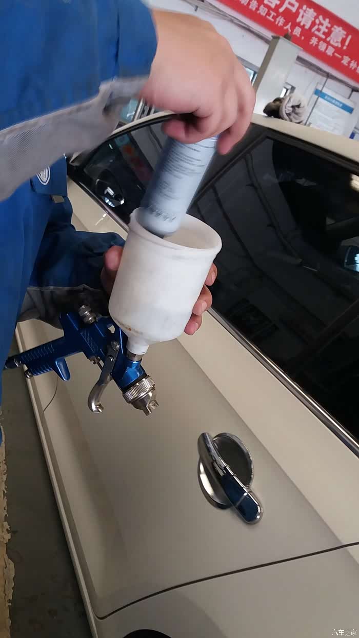 换了新枪后,师傅把一瓶消毒液全部倒入当中,通过气压从喷枪里喷出杀毒,我觉得没什么技术含量,以后用家里养花喷壶也可以。