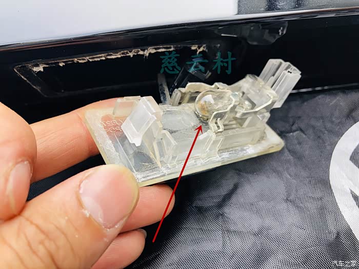 今天的帖子内容的由来,其实也是洗车后擦车时发现的问题,在擦拭车辆后摄像头的过程中,感觉到摄像头居然有松动的问题,检查后发现是牌照灯底座的胶老化造成的松动。(PS:之前改装过倒车影像,牌照灯底座有过更换)