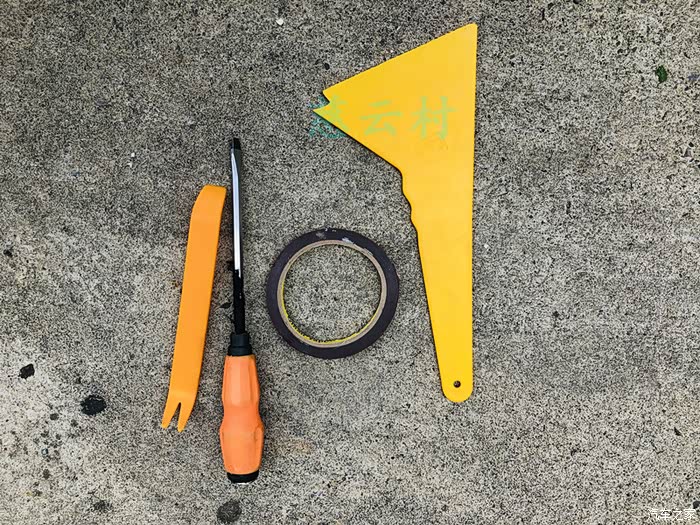 原本我以为是很简单的事情,从外面撬开这个牌照灯底座就行了,没想到的是拿来了这么一大堆的工具,如想换胶干净彻底需要拆后备箱的内衬。 暗自庆幸没乱拆。