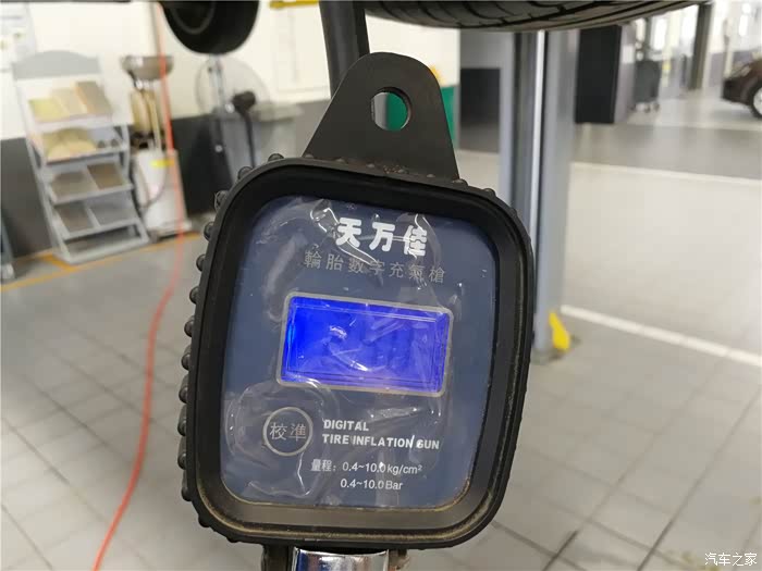 检查胎压。发现四个轮胎的胎压不一致,有2.3和2.4,还有2.45,而非他们行业常说的2.5个压,自从上次换胎两个多月,确实没有检查过胎压了,还是大意了。