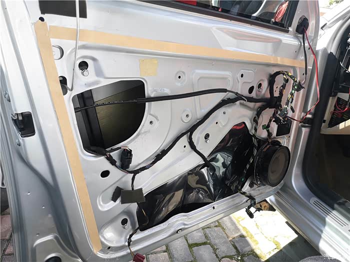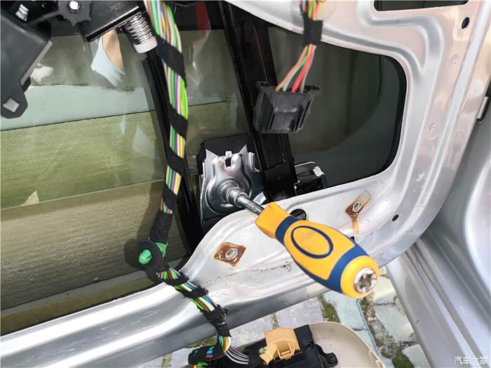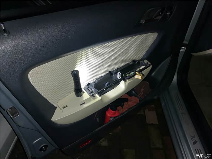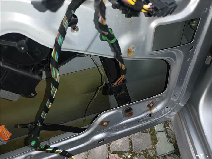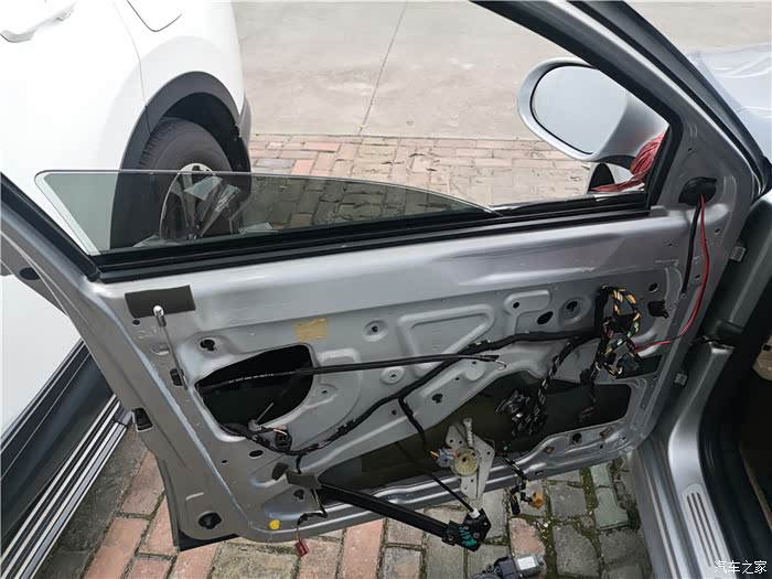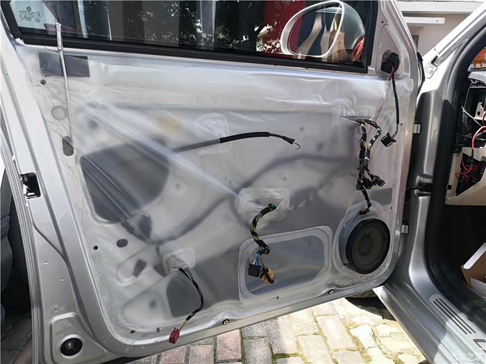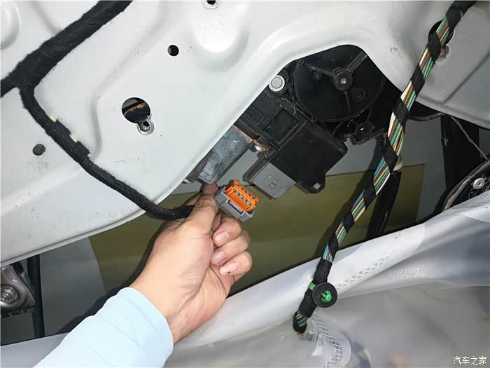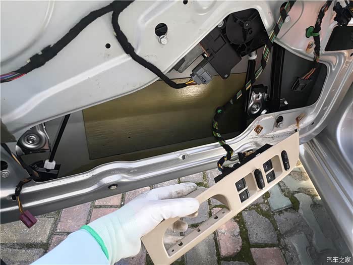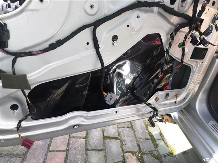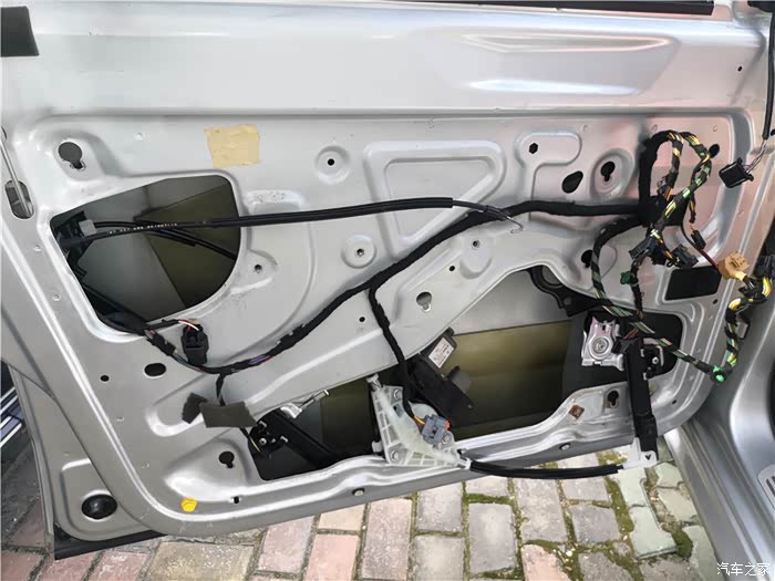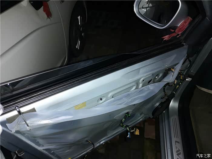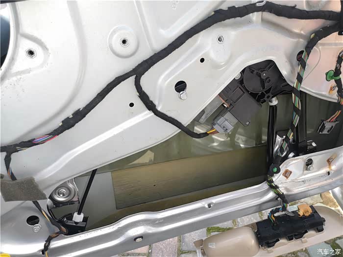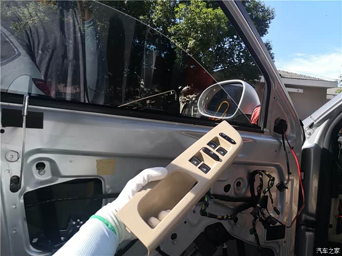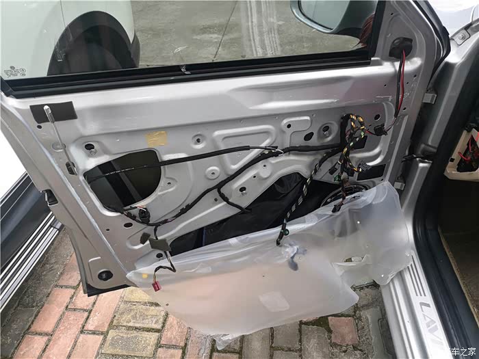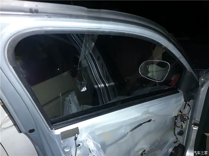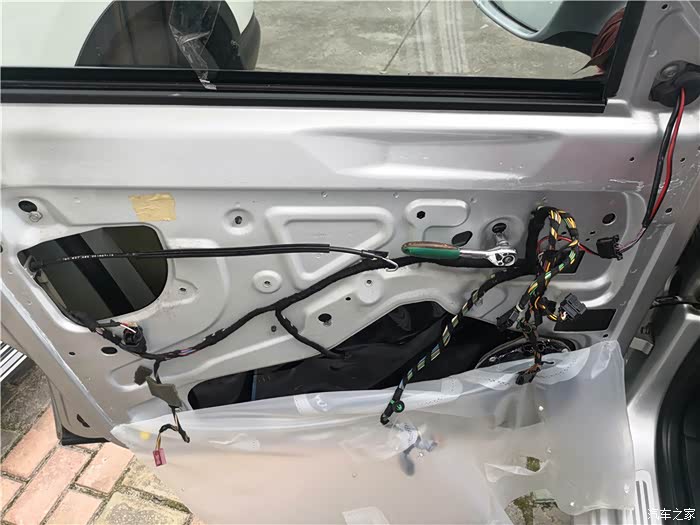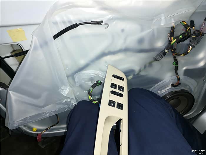 拆下车门,还得拆开防水膜。