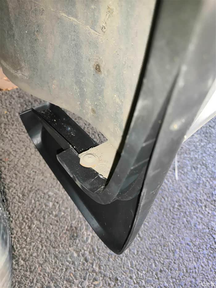 今天在外出回来时,把车停在车库后无意中发现老朗的两个后挡泥板都已经脱落了。只留下前面两个挡泥板。