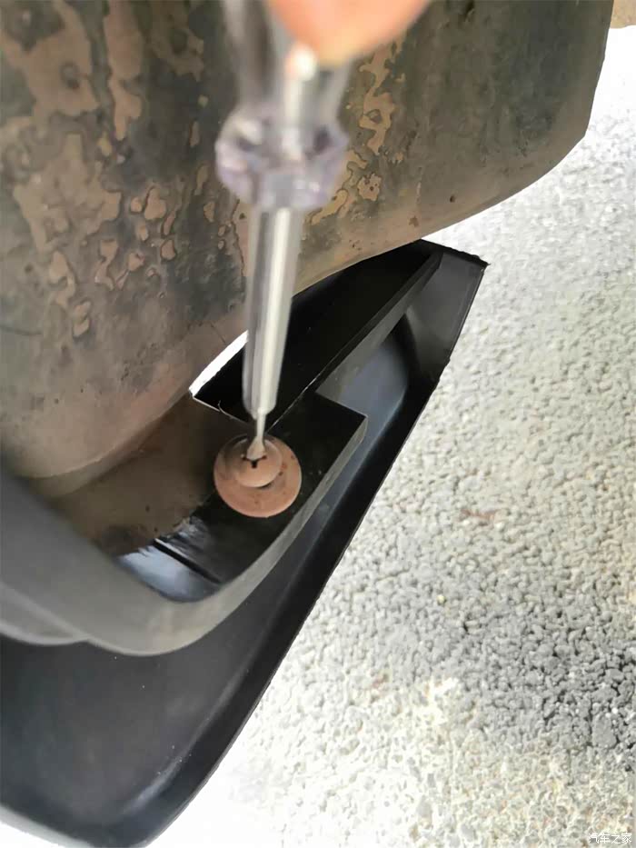 看来只有先把螺丝拆下来,再在挡泥板上钻个空,然后用螺丝把它固定好才行。