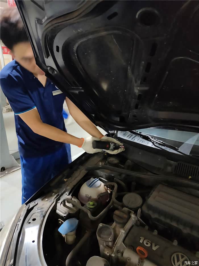 维修师傅在检查了各个油液液面和简单清理了发动机舱后将前机盖盖好。