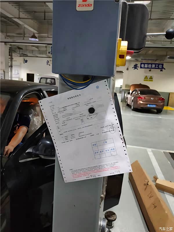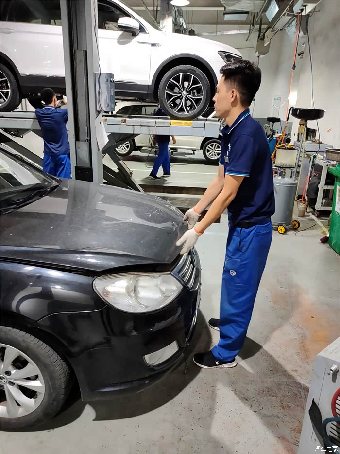 和工作人员说明车辆存在的问题之后,车辆被开到维修工位上准备进行检查。